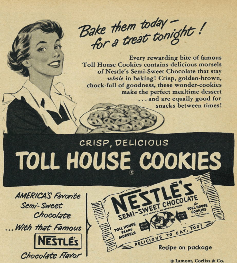 Toll House Cookie Ad from the 1950s. Source: Quaint Cooking.